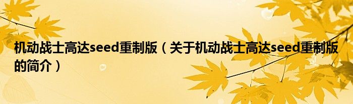 本文關于機動戰士高達seed重制版的簡介就講解完畢,希望對大家有所幫助。