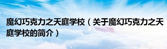 大家好,魔幻巧克力之天庭學校,關于魔幻巧克力之天庭學校的簡介很多人還不知道,現在讓我們一起來看看吧!