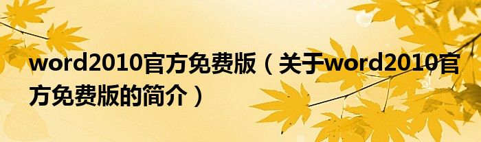 本文關于word2010官方免費版的簡介就講解完畢,希望對大家有所幫助。