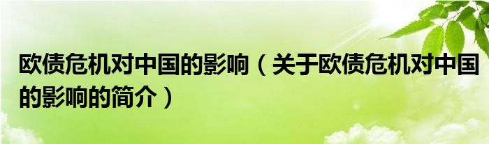 本文關于歐債危機對中國的影響的簡介就講解完畢,希望對大家有所幫助。