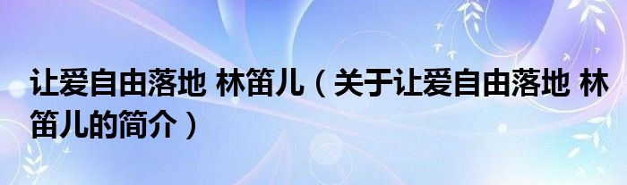 大家好,讓愛自由落地 林笛兒,關(guān)于讓愛自由落地 林笛兒的簡介很多人還不知道,現(xiàn)在讓我們一起來看看吧!