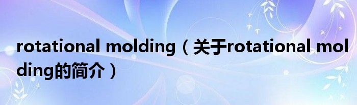 大家好,rotational molding,關于rotational molding的簡介很多人還不知道,現在讓我們一起來看看吧!