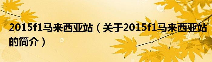 本文關于2015f1馬來西亞站的簡介就講解完畢,希望對大家有所幫助。