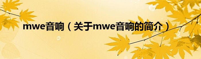 大家好,mwe音響,關(guān)于mwe音響的簡(jiǎn)介很多人還不知道,現(xiàn)在讓我們一起來(lái)看看吧!