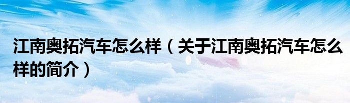 本文關于江南奧拓汽車怎么樣的簡介就講解完畢,希望對大家有所幫助。