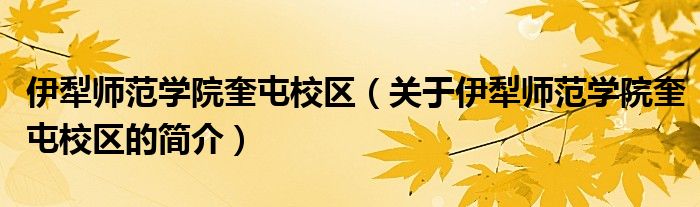 本文關于伊犁師范學院奎屯校區的簡介就講解完畢,希望對大家有所幫助。