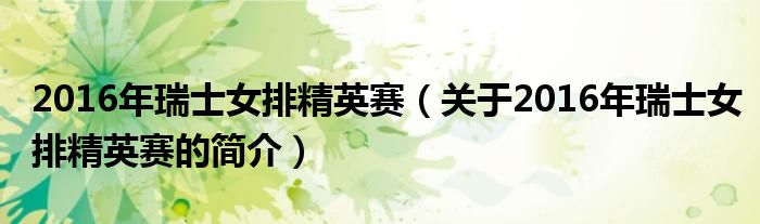 本文關于2016年瑞士女排精英賽的簡介就講解完畢,希望對大家有所幫助。