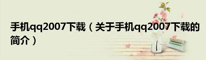 大家好,手機qq2007下載,關于手機qq2007下載的簡介很多人還不知道,現在讓我們一起來看看吧!