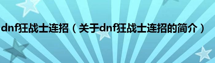 本文關于dnf狂戰士連招的簡介就講解完畢,希望對大家有所幫助。