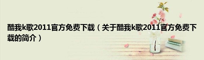 本文關于酷我k歌2011官方免費下載的簡介就講解完畢,希望對大家有所幫助。