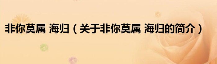 大家好,非你莫屬 海歸,關于非你莫屬 海歸的簡介很多人還不知道,現在讓我們一起來看看吧!