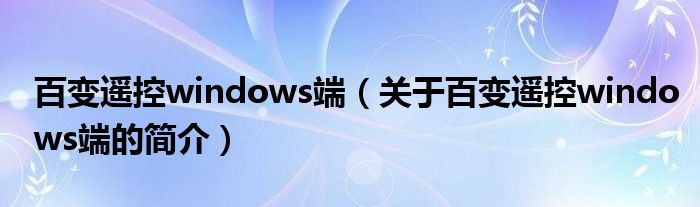 本文關于百變遙控windows端的簡介就講解完畢,希望對大家有所幫助。