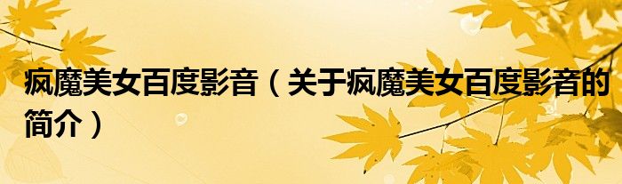 本文關(guān)于瘋魔美女百度影音的簡介就講解完畢,希望對大家有所幫助。