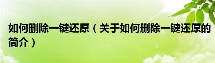 本文關于如何刪除一鍵還原的簡介就講解完畢,希望對大家有所幫助。