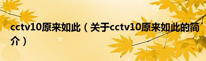 大家好,cctv10原來如此,關于cctv10原來如此的簡介很多人還不知道,現在讓我們一起來看看吧!
