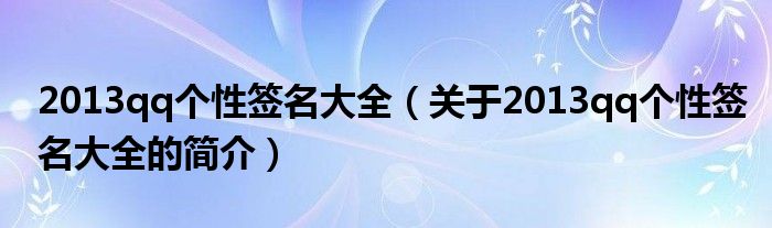 本文關于2013qq個性簽名大全的簡介就講解完畢,希望對大家有所幫助。