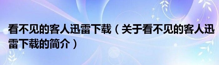 本文關于看不見的客人迅雷下載的簡介就講解完畢,希望對大家有所幫助。