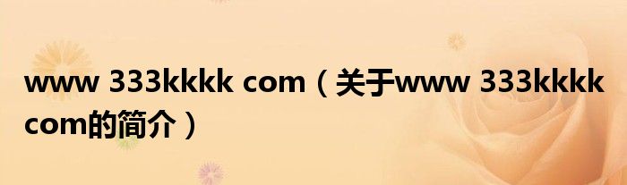 本文關(guān)于www 333kkkk com的簡介就講解完畢,希望對大家有所幫助。