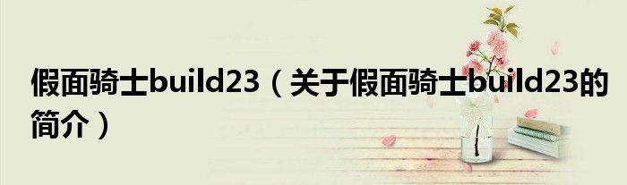 本文關于假面騎士build23的簡介就講解完畢,希望對大家有所幫助。