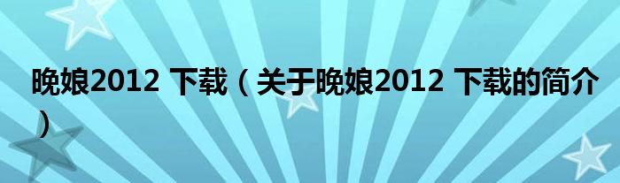 本文關(guān)于晚娘2012 下載的簡介就講解完畢,希望對大家有所幫助。