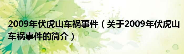 本文關于2009年伏虎山車禍事件的簡介就講解完畢,希望對大家有所幫助。
