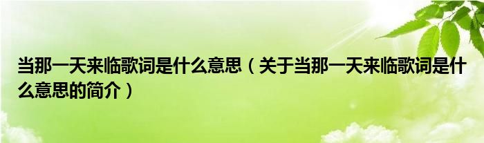 本文關(guān)于當(dāng)那一天來臨歌詞是什么意思的簡介就講解完畢,希望對大家有所幫助。