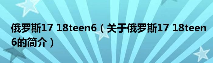 本文關(guān)于俄羅斯17 18teen6的簡(jiǎn)介就講解完畢,希望對(duì)大家有所幫助。