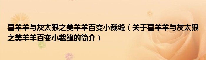 本文關于喜羊羊與灰太狼之美羊羊百變小裁縫的簡介就講解完畢,希望對大家有所幫助。