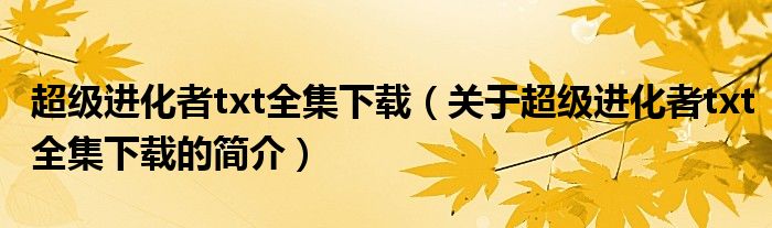 本文關于超級進化者txt全集下載的簡介就講解完畢,希望對大家有所幫助。