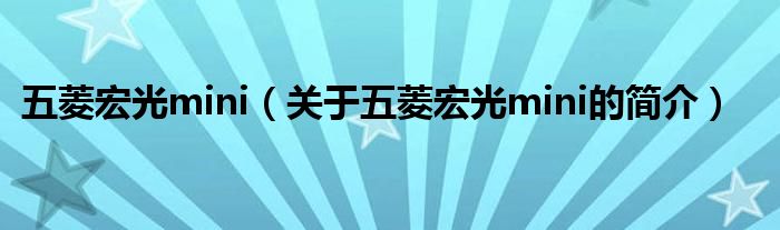 本文關于五菱宏光mini的簡介就講解完畢,希望對大家有所幫助。