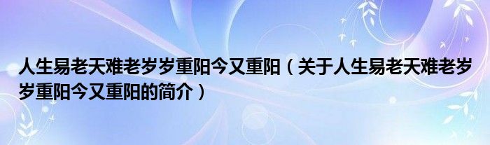 大家好,人生易老天難老歲歲重陽今又重陽,關于人生易老天難老歲歲重陽今又重陽的簡介很多人還不知道,現在讓我們一起來看看吧!