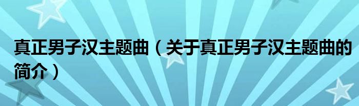 本文關于真正男子漢主題曲的簡介就講解完畢,希望對大家有所幫助。