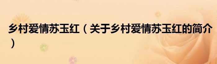 本文關(guān)于鄉(xiāng)村愛情蘇玉紅的簡介就講解完畢,希望對大家有所幫助。