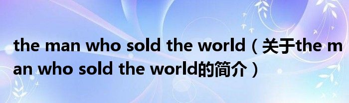大家好,the man who sold the world,關于the man who sold the world的簡介很多人還不知道,現在讓我們一起來看看吧!