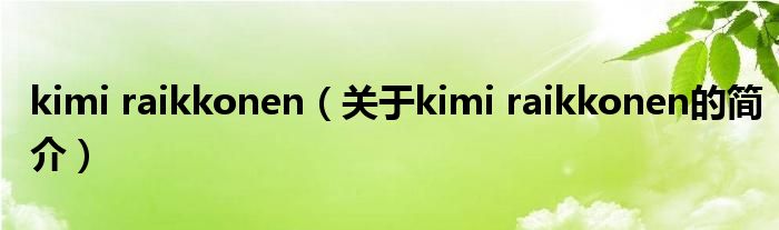 本文關于kimi raikkonen的簡介就講解完畢,希望對大家有所幫助。