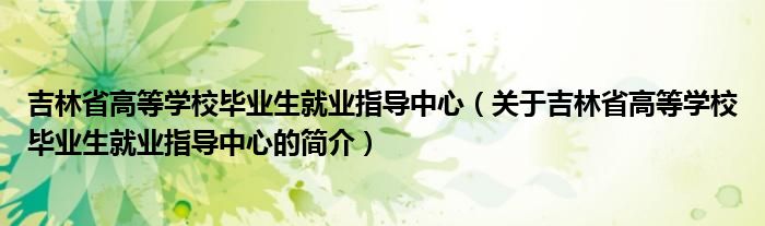 本文關于吉林省高等學校畢業生就業指導中心的簡介就講解完畢,希望對大家有所幫助。