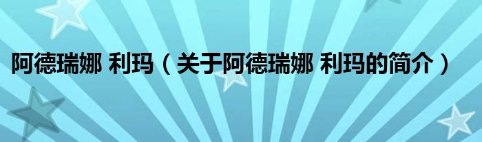 大家好,阿德瑞娜 利瑪,關于阿德瑞娜 利瑪的簡介很多人還不知道,現在讓我們一起來看看吧!