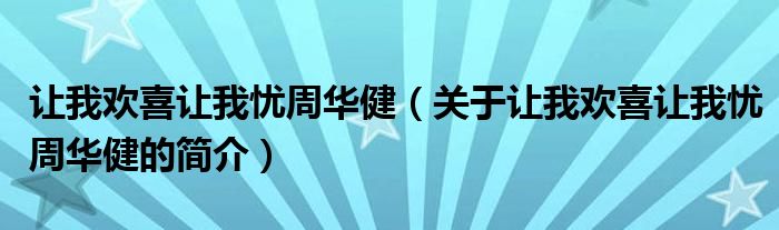 本文關于讓我歡喜讓我憂周華健的簡介就講解完畢,希望對大家有所幫助。