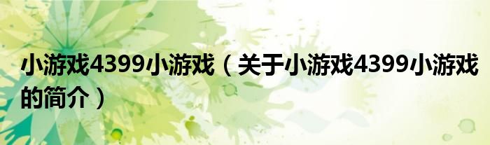 本文關于小游戲4399小游戲的簡介就講解完畢,希望對大家有所幫助。