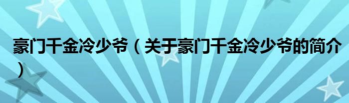 本文關于豪門千金冷少爺的簡介就講解完畢,希望對大家有所幫助。