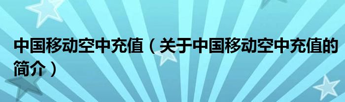 本文關(guān)于中國移動空中充值的簡介就講解完畢,希望對大家有所幫助。