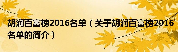 本文關于胡潤百富榜2016名單的簡介就講解完畢,希望對大家有所幫助。