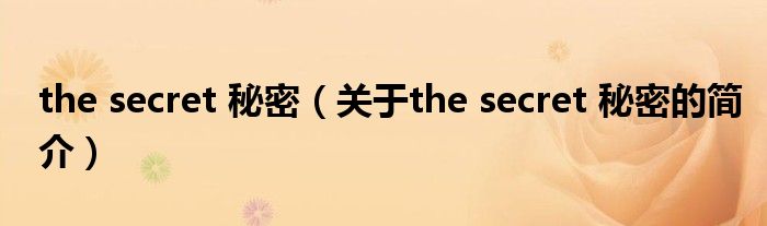 本文關于the secret 秘密的簡介就講解完畢,希望對大家有所幫助。
