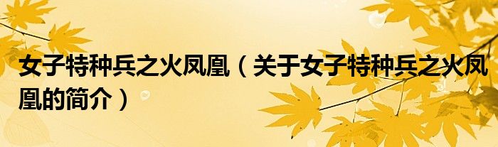 本文關(guān)于女子特種兵之火鳳凰的簡介就講解完畢,希望對大家有所幫助。