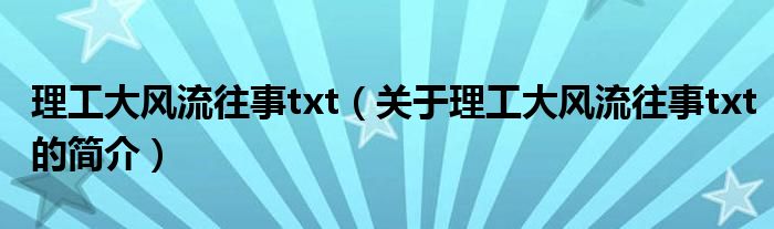 本文關(guān)于理工大風(fēng)流往事txt的簡(jiǎn)介就講解完畢,希望對(duì)大家有所幫助。
