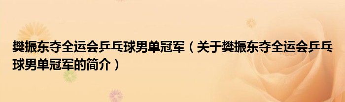 本文關于樊振東奪全運會乒乓球男單冠軍的簡介就講解完畢,希望對大家有所幫助。