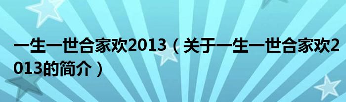 本文關于一生一世合家歡2013的簡介就講解完畢,希望對大家有所幫助。