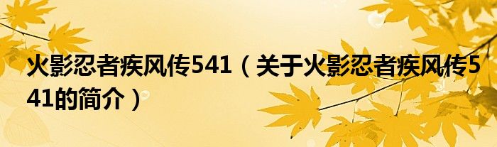 本文關于火影忍者疾風傳541的簡介就講解完畢,希望對大家有所幫助。