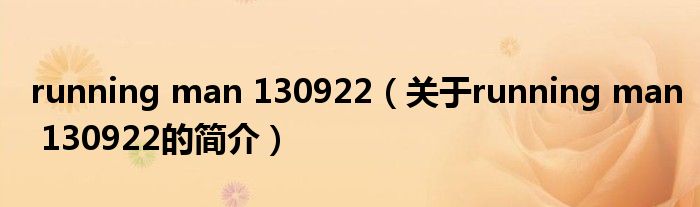 本文關于running man 130922的簡介就講解完畢,希望對大家有所幫助。