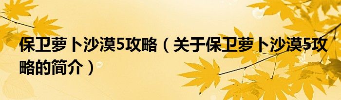 本文關(guān)于保衛(wèi)蘿卜沙漠5攻略的簡介就講解完畢,希望對大家有所幫助。
